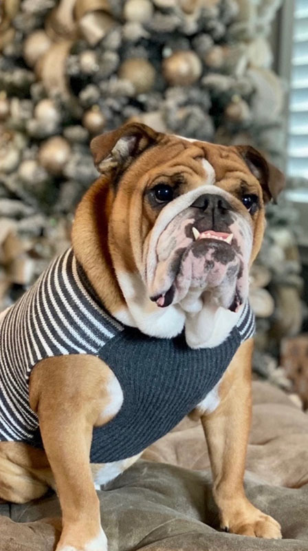 Meet Teddy, the 8-year-old Bulldog and professional napper and snack enthusiast. He lives with his parents and his tiny but mighty Yorkie cousin, who secretly runs the show.